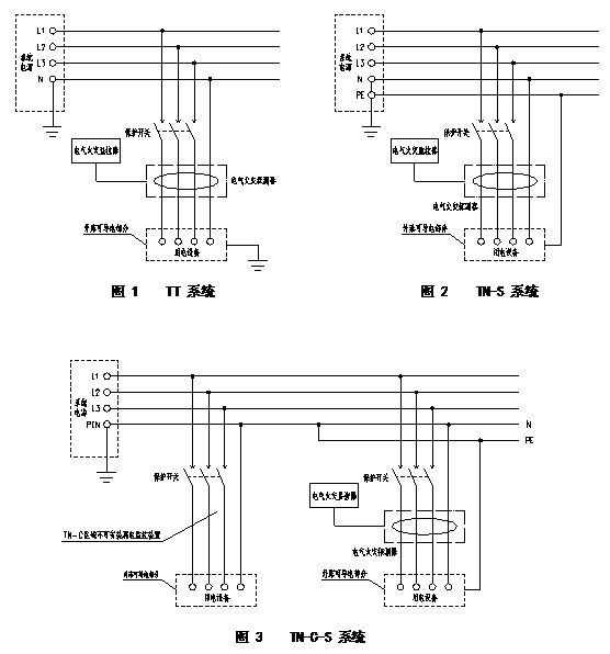 3.4.4TN-C-S接地系統(tǒng)中,電氣火災(zāi)監(jiān)控系統(tǒng)的剩余電流動作保護(hù)只允許使用在PE線與N線分開以后的部分。