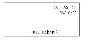 密碼正確后顯示如上面菜單,密碼錯誤則返回封面菜單。 其中小時處(即數字“10”反顯,用“F1”鍵進行切換,依次反顯時、分、秒、年、月、日,用“F2”鍵進行反顯處時間修改,每按一次“F2”鍵,反顯處數字增一。